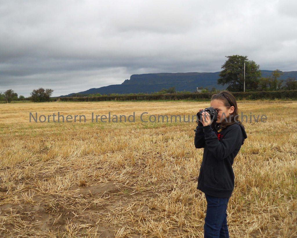 Rachel Cochrane the Great Great Granddaughter of Thomas Nicholl founder of the Broighter Gold, taking some creative photo’s in the actual field where he discovered the gold. A moment that captures a very unique golden link to the past!