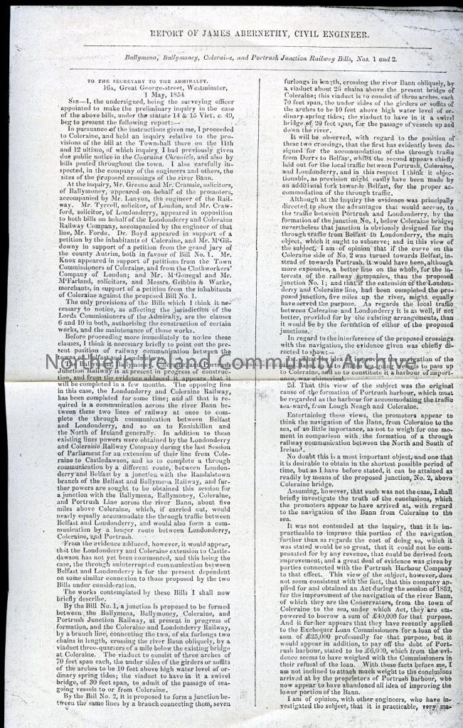Railway extension and Navigation of the Bann