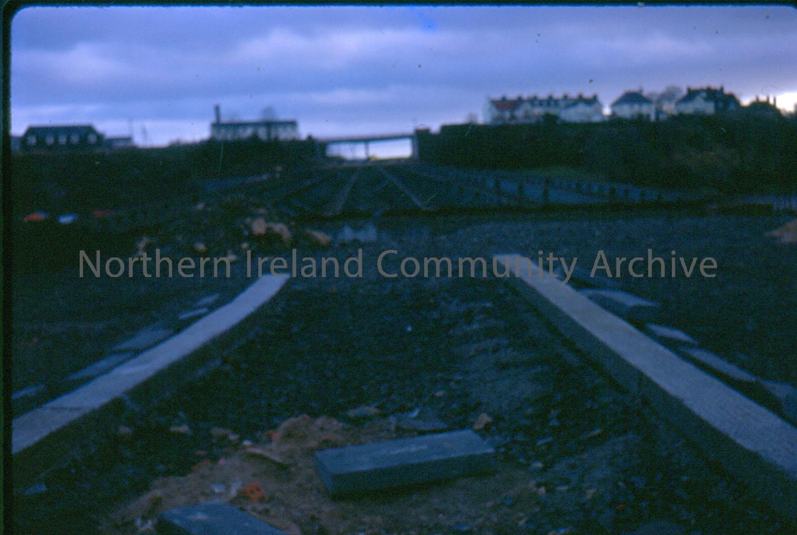 slide depicting railway lines being laid? Slide numbered 16 and dated June 1974