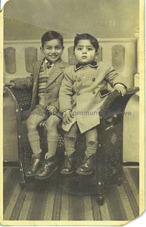 Left: Mr Ramesh Kumar Chada, age 5; Right: Mr Rama Kant Chada, age 3; Castledawson - 1953