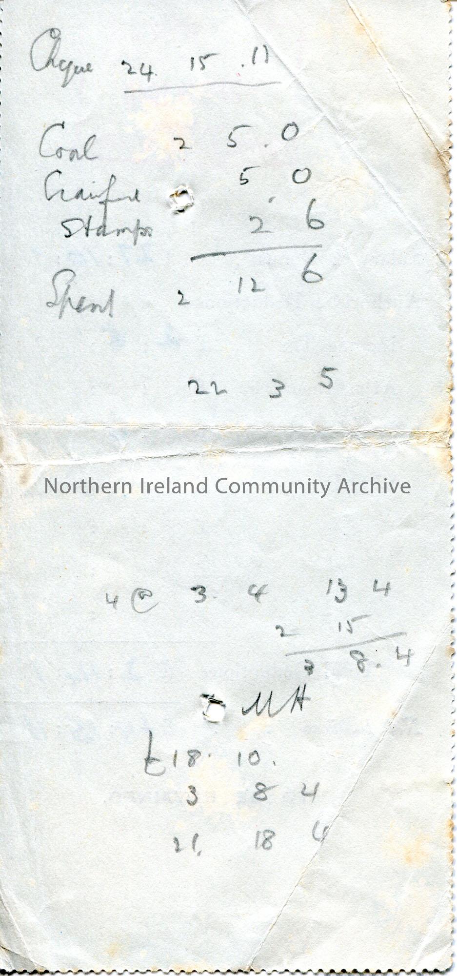 Receipt slip for a salary and deductions dated 2nd February 1948. Red stamp reads ‘Collector Customs & Excise, Cashier Custom House, Belfast’. Totalli… – scan061b