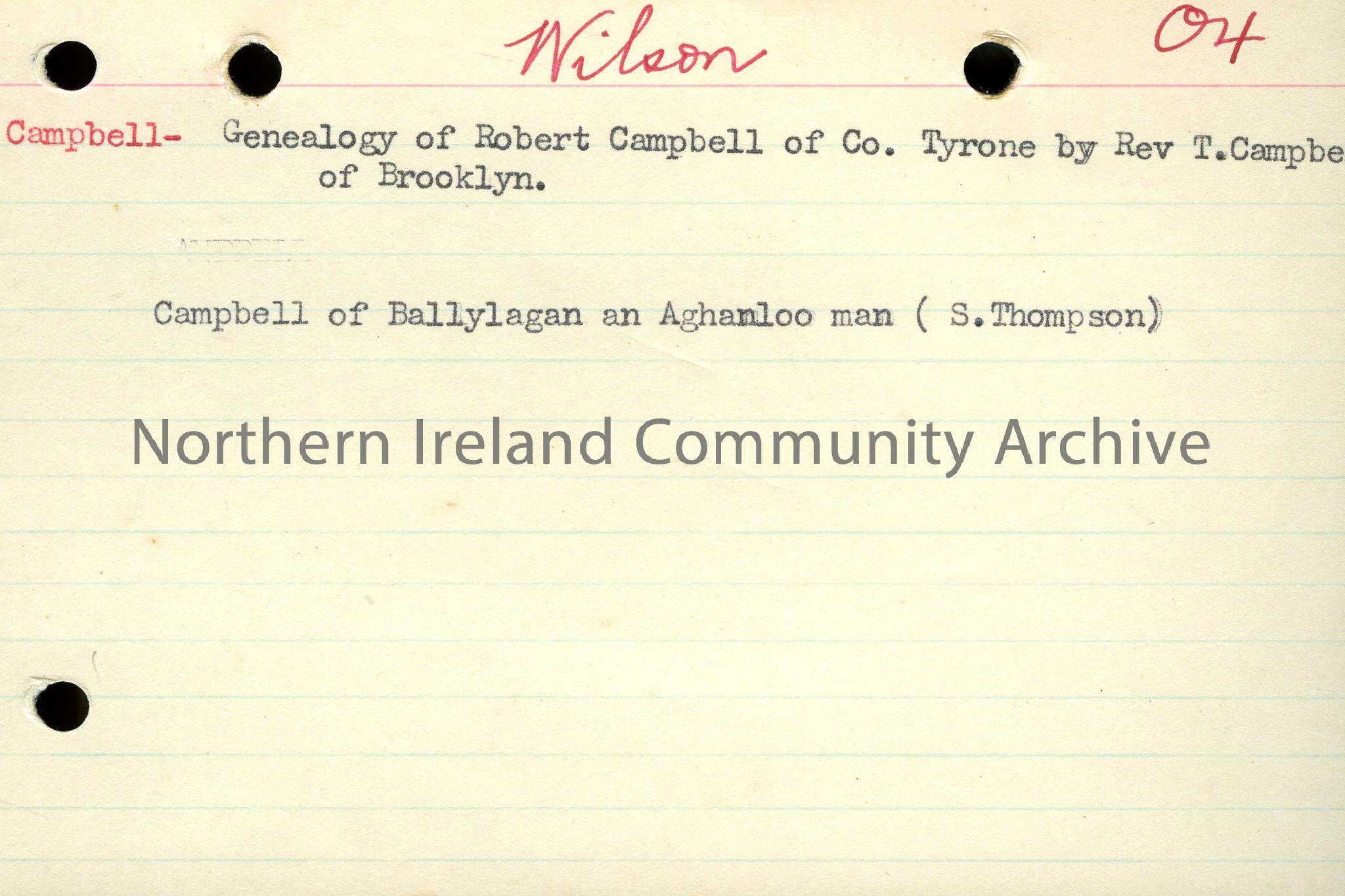Record of a book - Genealogy of Robert Campbell of Co. Tyrone by Rev. T Campbell of Brooklyn