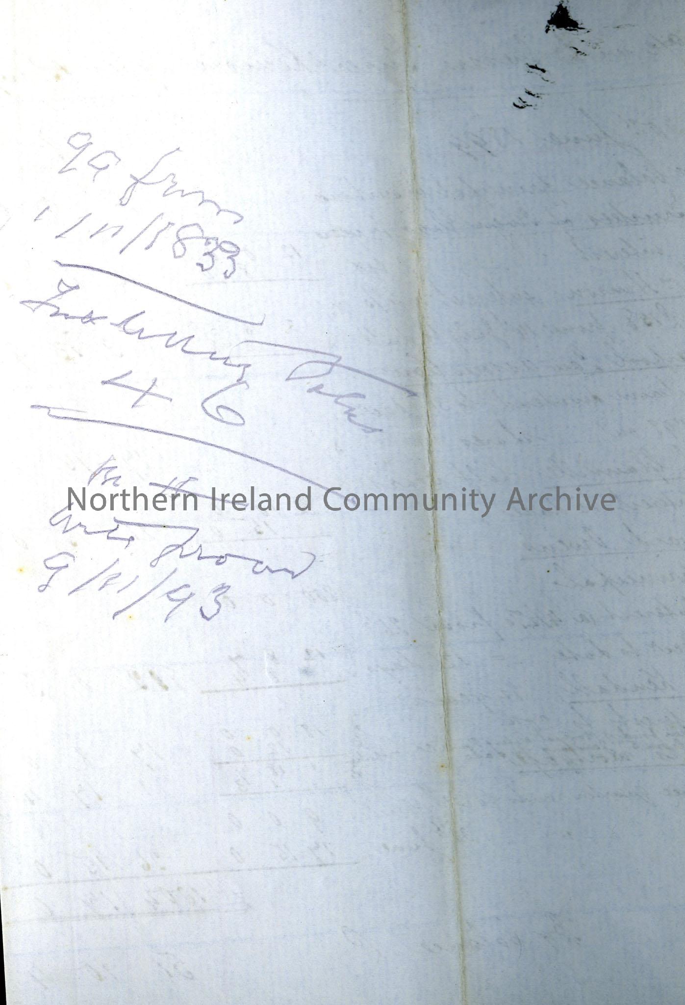 Record of accounts (handwritten) for 'Miss Elizabeth Hezlet and the Executors of Miss Mary Hezlet',Tyrer, Kenion and Co. Half yearly statement, January to June 1899. Handwritten notes on back.