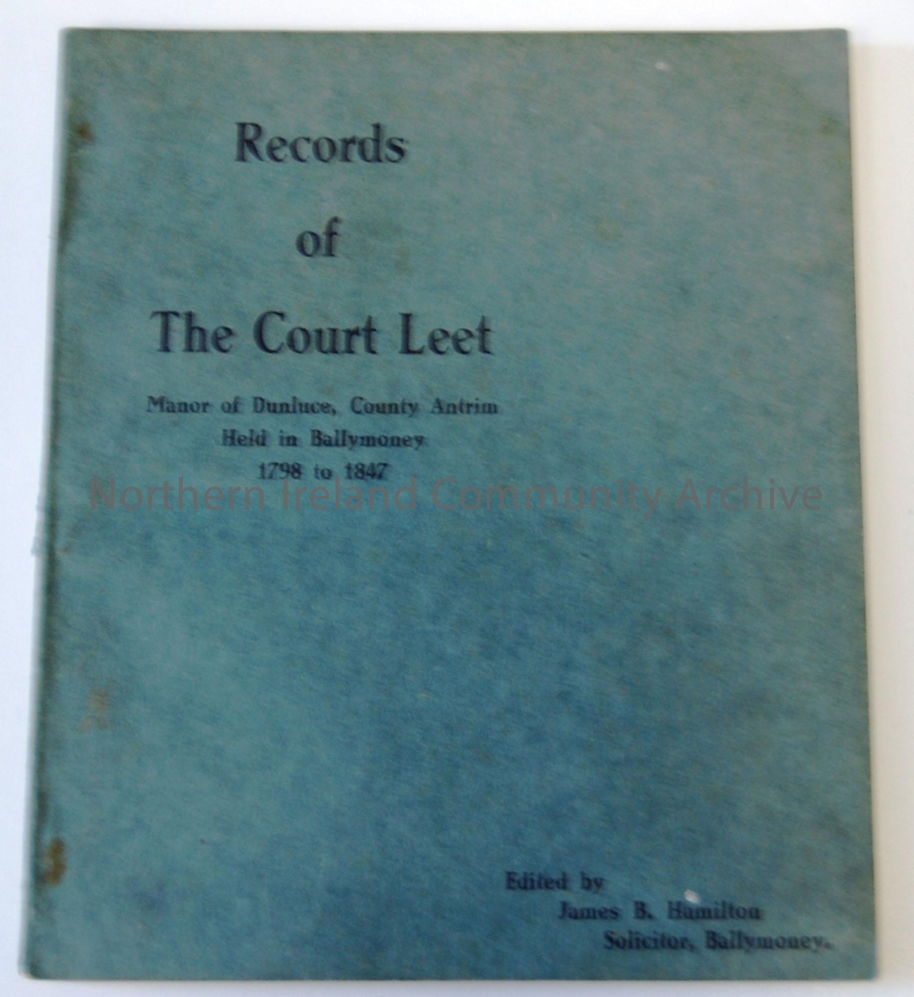 Records of the Court Leet Manor of Dunluce, County Antrim. Held in Ballymoney 1798- 1847. Edited by James B. Hamilton Solicitor, Ballymoney.