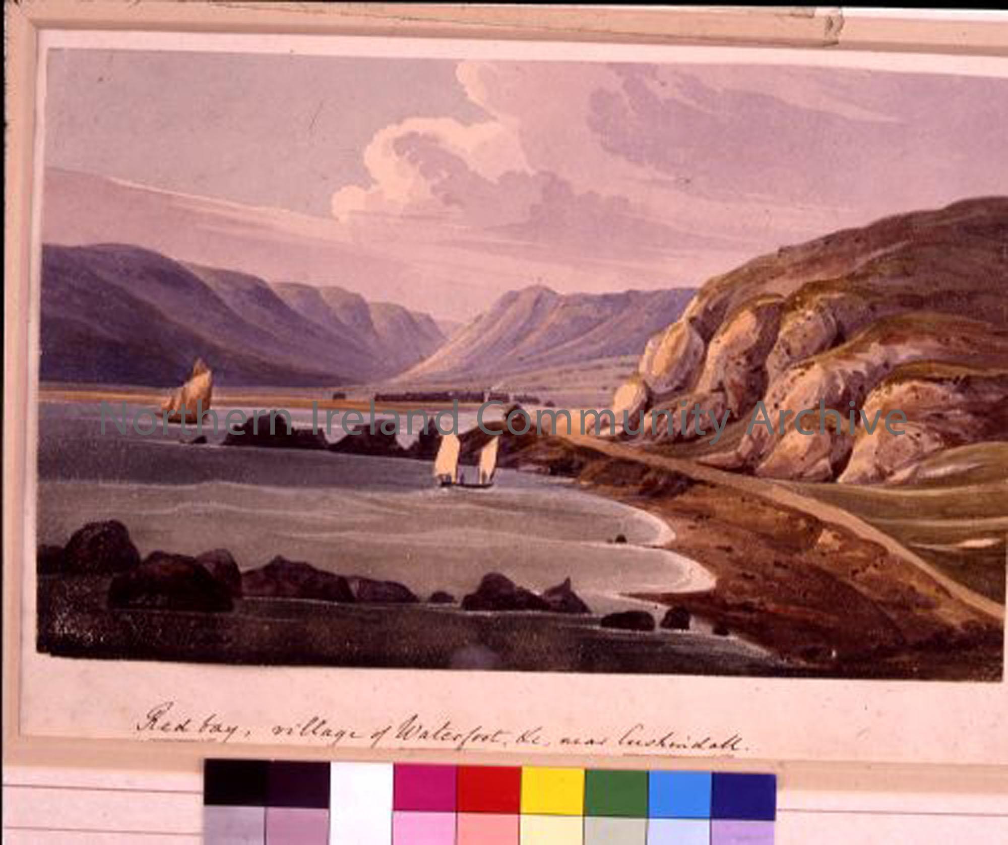 Red Bay, Village of Waterfoot, near Cushendall. Watercolour by Andrew Nicholl.