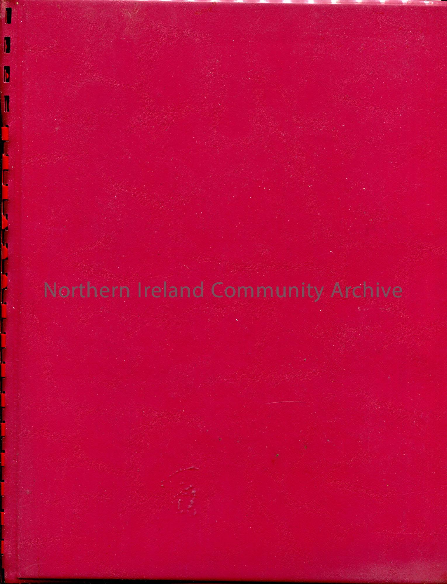 Red folder with paper pages attached to inside. Contains Songs of the People articles of songs from numbers 801-837. Folk songs are pasted to some of …