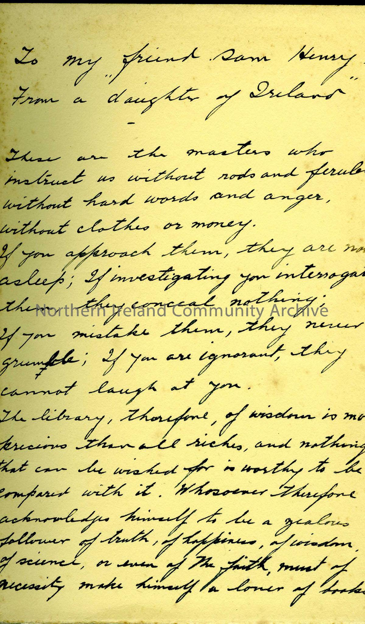 Renascence and other Poems. hand written message to Sam Henry on fly leaf from 'a true daughter of Ireland', re the value of books and wisdom