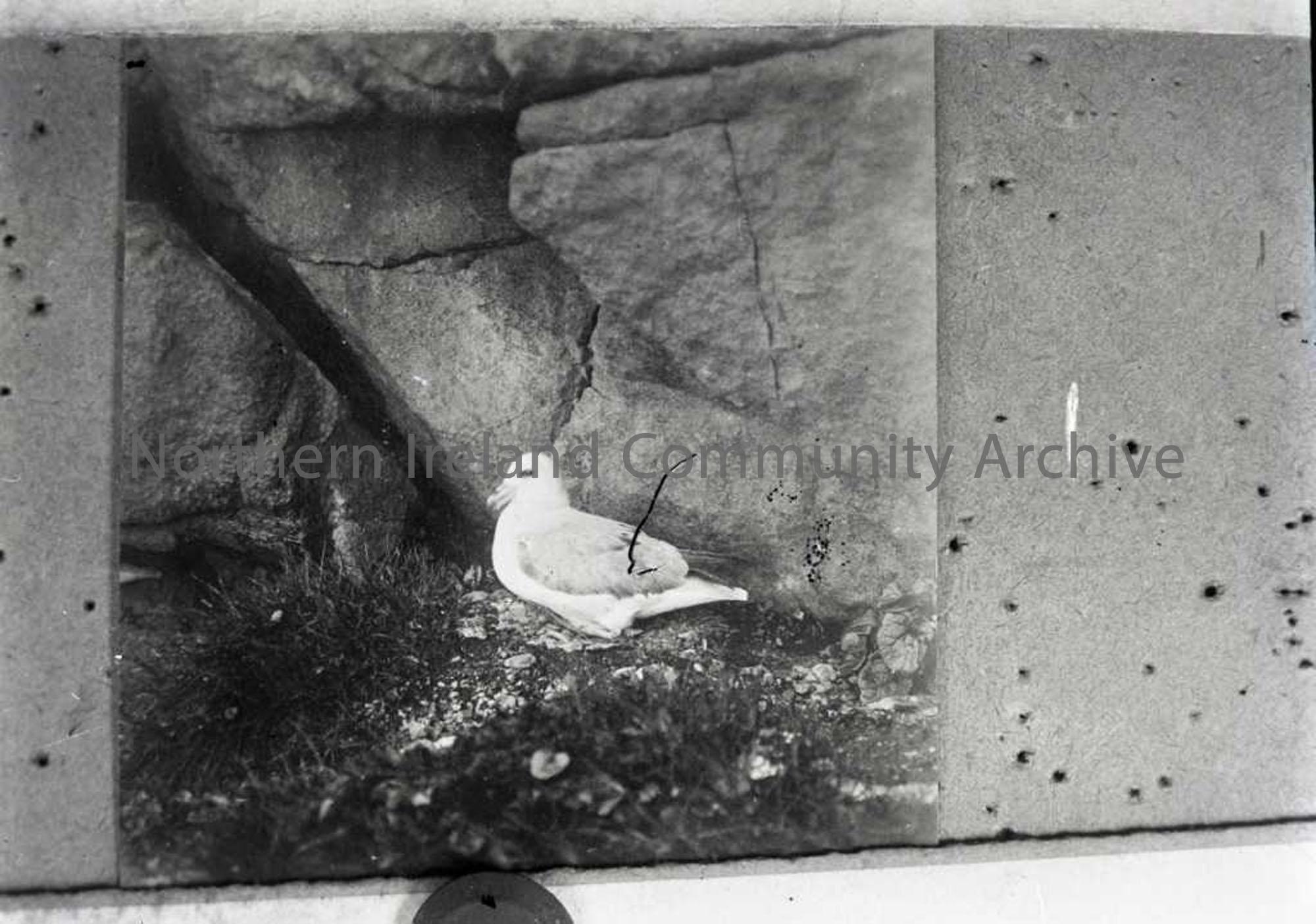Entitled Ring Plover's nest - close-up of gull on cliff face nest. No 121 on Nature Slides inventory