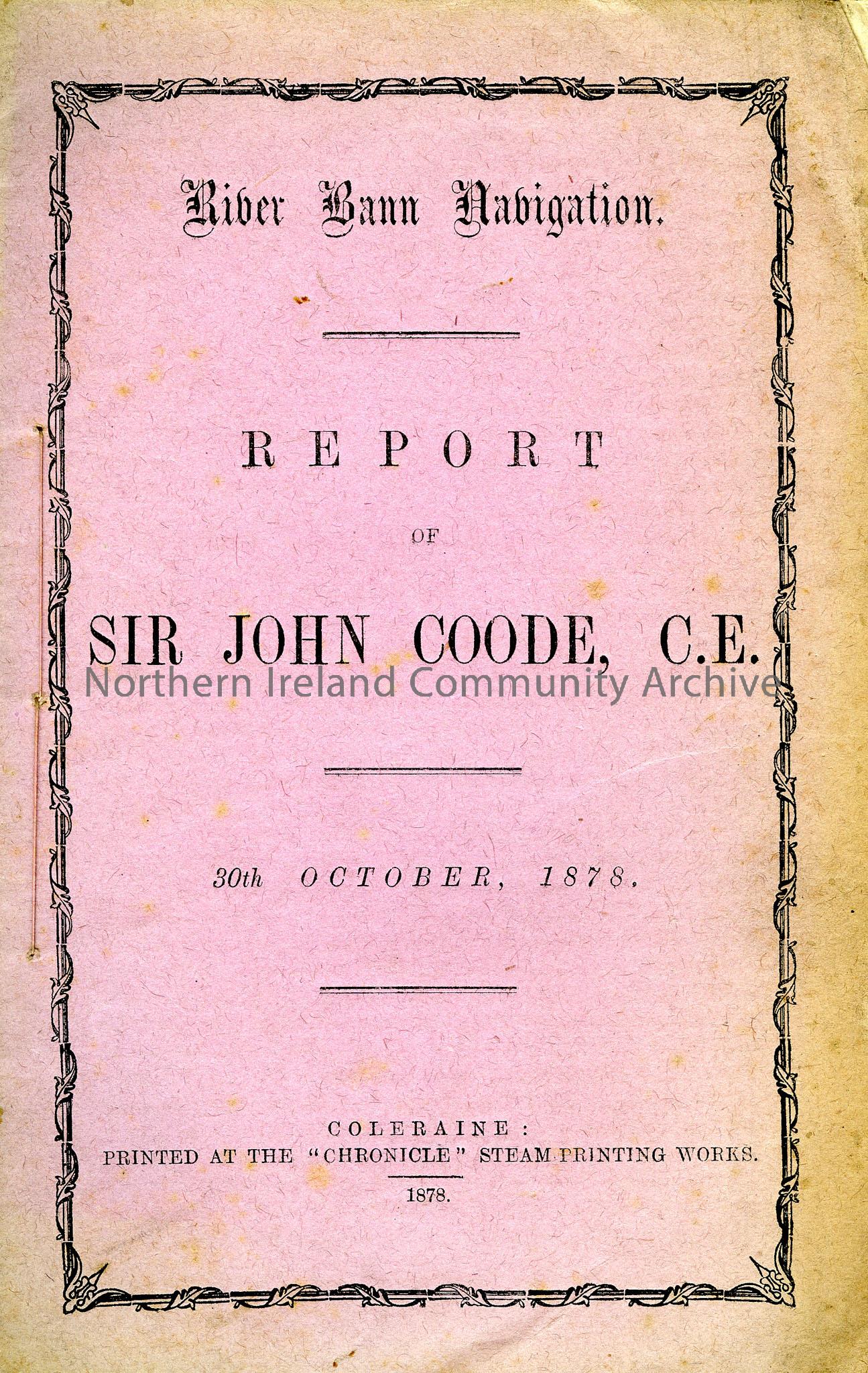 River Bann Navigation Report of Sir John Coode, C.E. Dating to the 30th of October 1878. Includes costing of works carried out on the River and surrounding area.