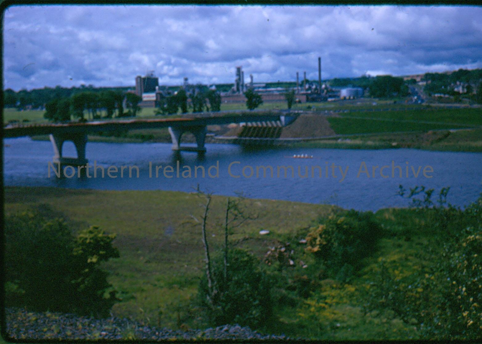 slide depicting River Bann with New Bridge being built. Slide numbered 5 and dated July 1974