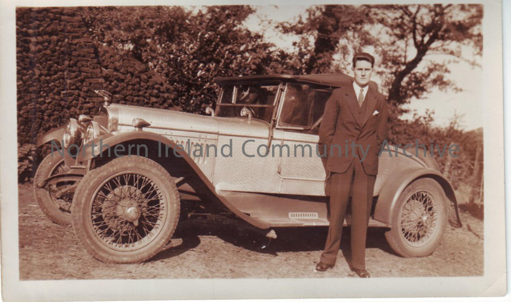 Robert McLean standing by his ‘Star’ car. This car is believed to have raced in the Ulster TT race, before being purchased by McLean.