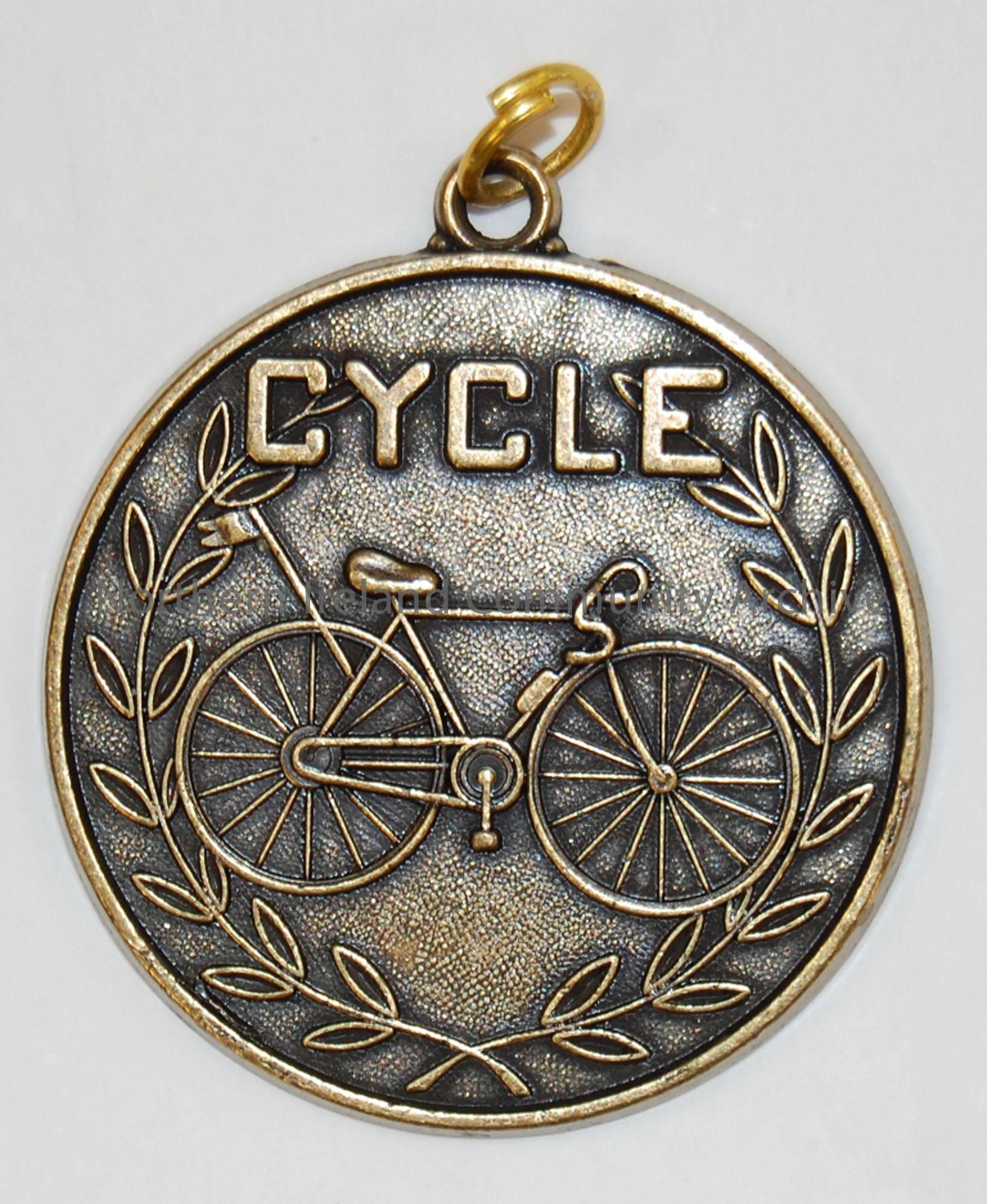 Round Bronze coloured presentation medal.