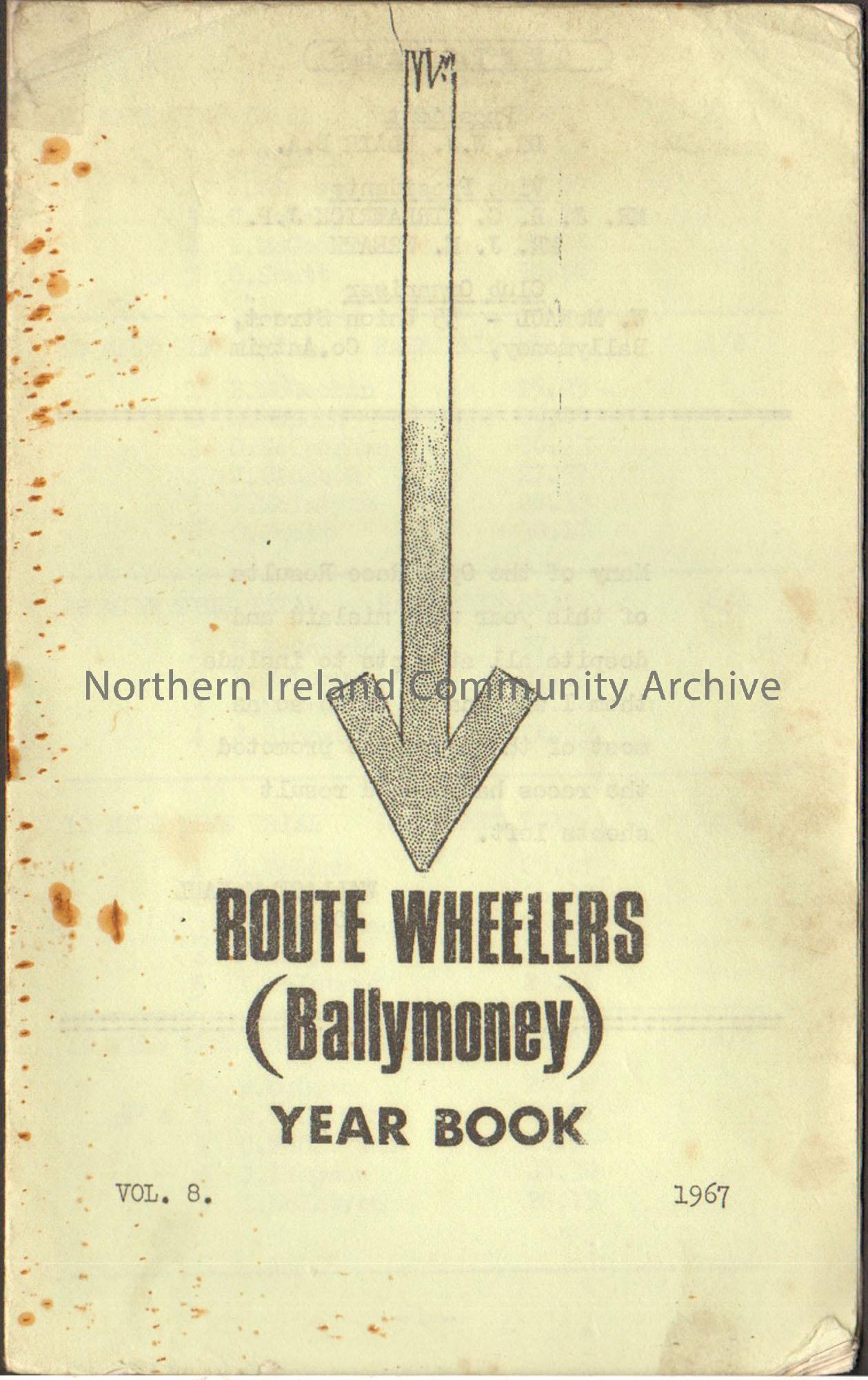 Route Wheelers (Ballymoney) Year Book Vol. 8 1967. Light green booklet with arrow pointing down on the front cover.