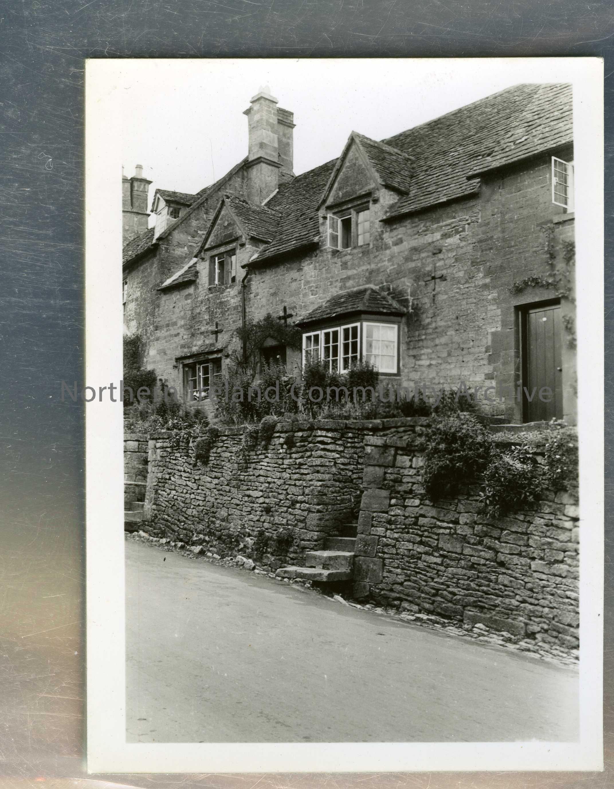 Row of houses captioned, 'Burton on the Hill in the Cotswolds'.