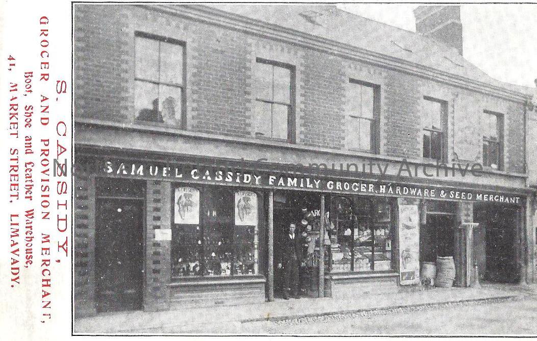 Samuel Cassidy, Family Grocer and Provision Merchant, Boot Shoe and Leather Warehouse, Limavady