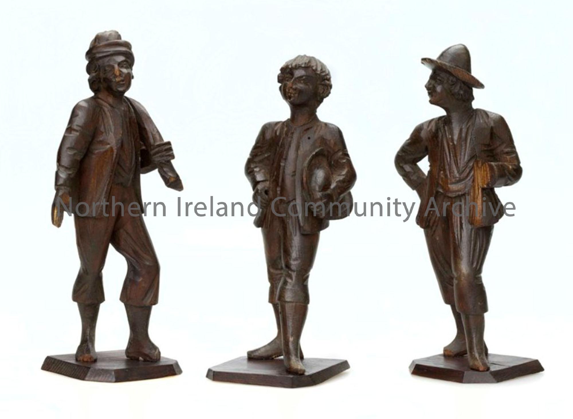 Sans Culotte Figure. Carved figure depicting a french revolutionary.These wooden figurines depict French Revolutionaries, known as 'sans culottes'. They date to the period when Bastille Day, 14 July, was celebrated in Ballymoney to commemorate the downfall of the French monarchy.
