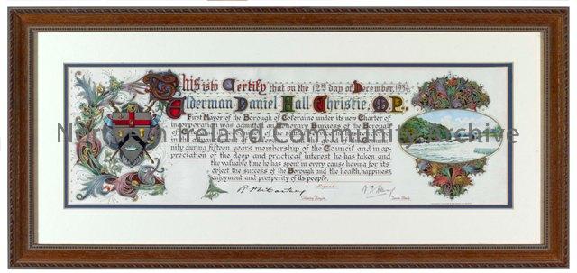 Scroll presented to Mayor of Coleraine Dan Christie on 12 December 1934.