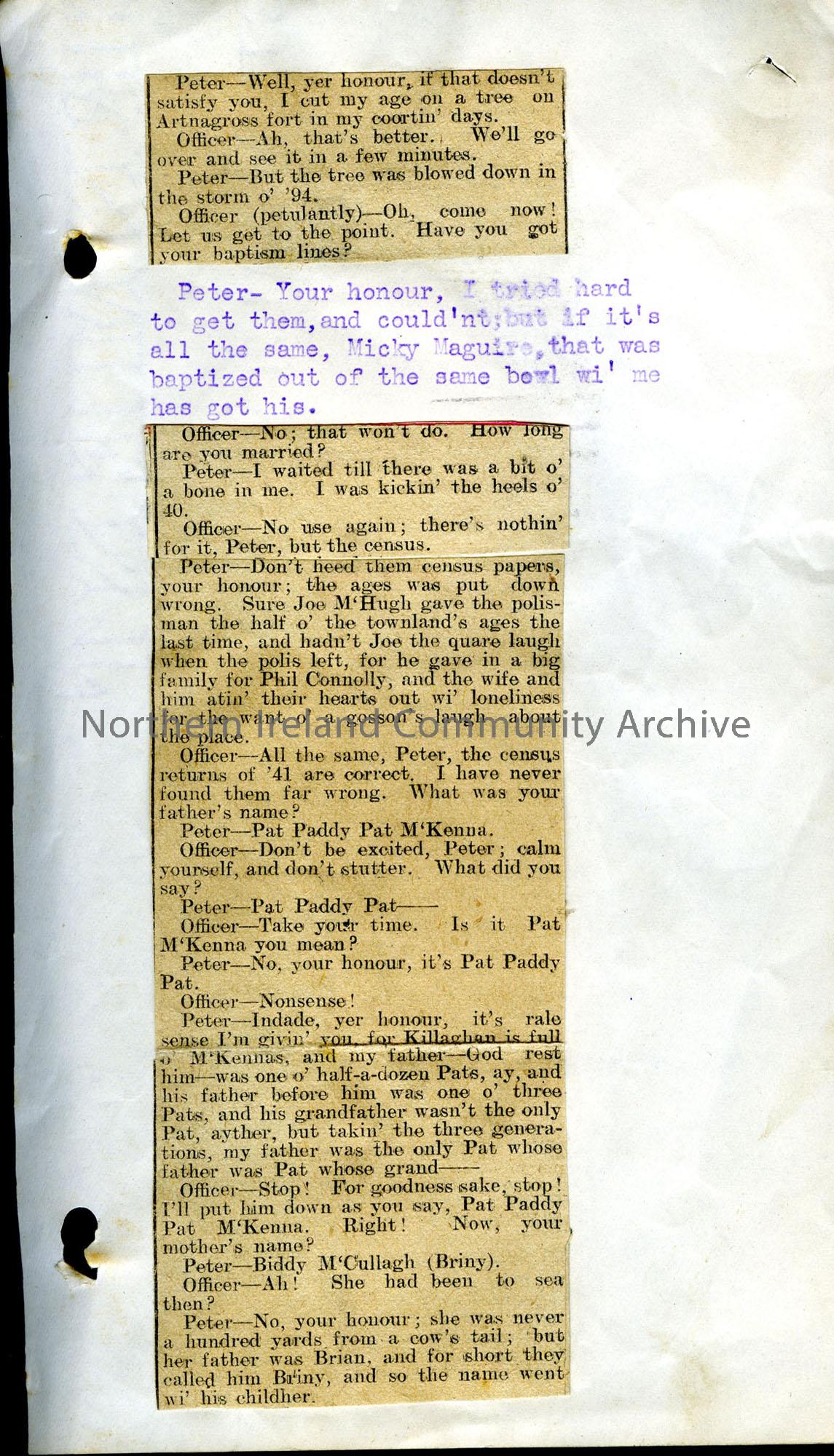 Second page of newspaper clippings titled ‘Peter McKenna’s Pension Claim’. A story about Peter Mckenna who was visited by a Pension Officer in order t…