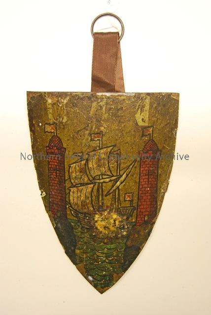 Heraldic shield no 15 cork - These five heraldic shields form part of an incomplete set. Vinycomb was very much part of the Gaelic revival and was a well known heraldic artist. Courtesy of Ballycastle Museum.