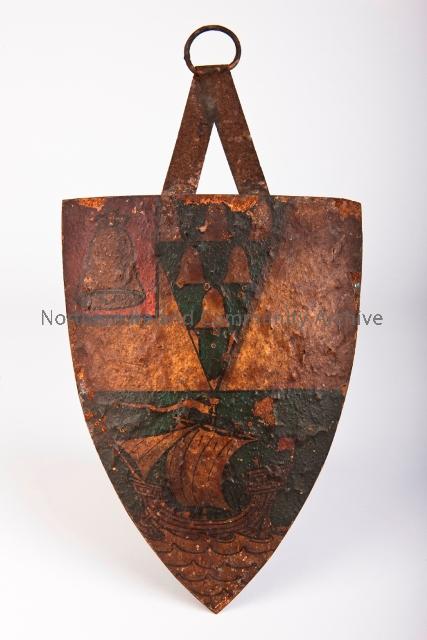 Heraldic shield no. 13 Belfast. Vinycomb was very much part of the Gaelic revival and was a well known heraldic artist. Courtesy of Ballycastle Museum.
