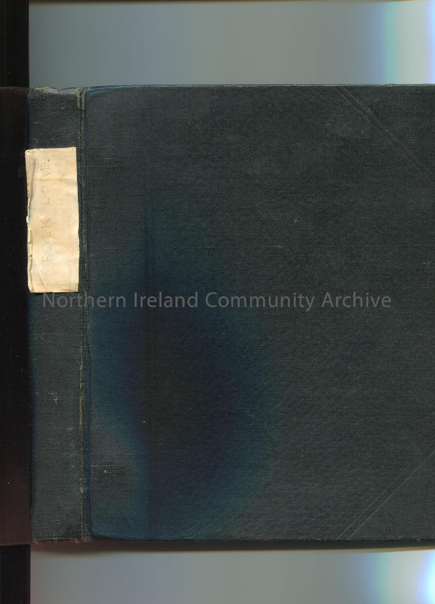 ‘Simplex’ black coloured ring binder folder labelled on the spine as ‘Folk Lore’. Metal hardware inside folder.
