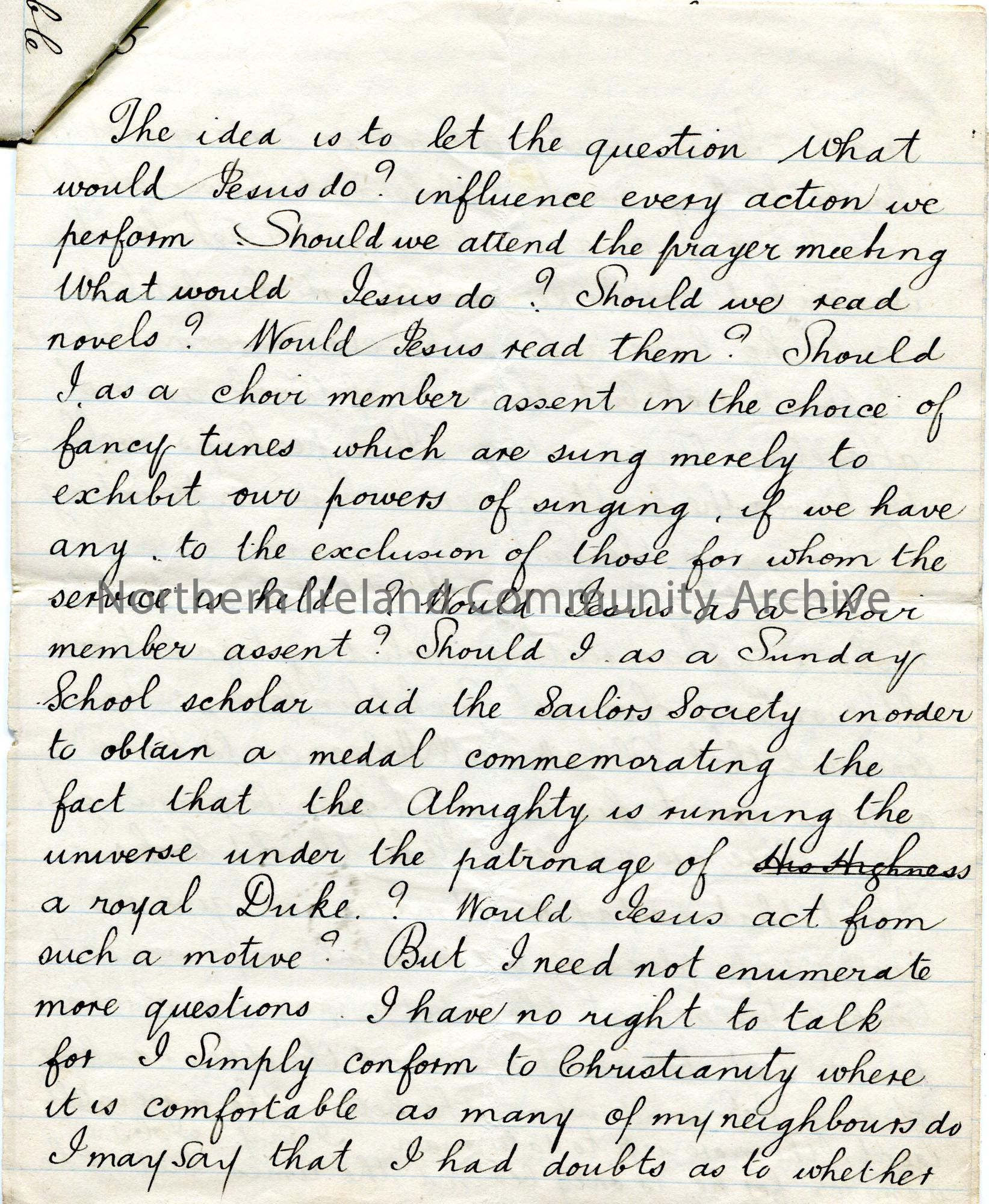 Six pages of a handwritten essay titled, ‘An Evening Walk’. Re philosophical, religious thoughts. Refers to the Sailor’s Society. Rough, handwritten n… – scan010e