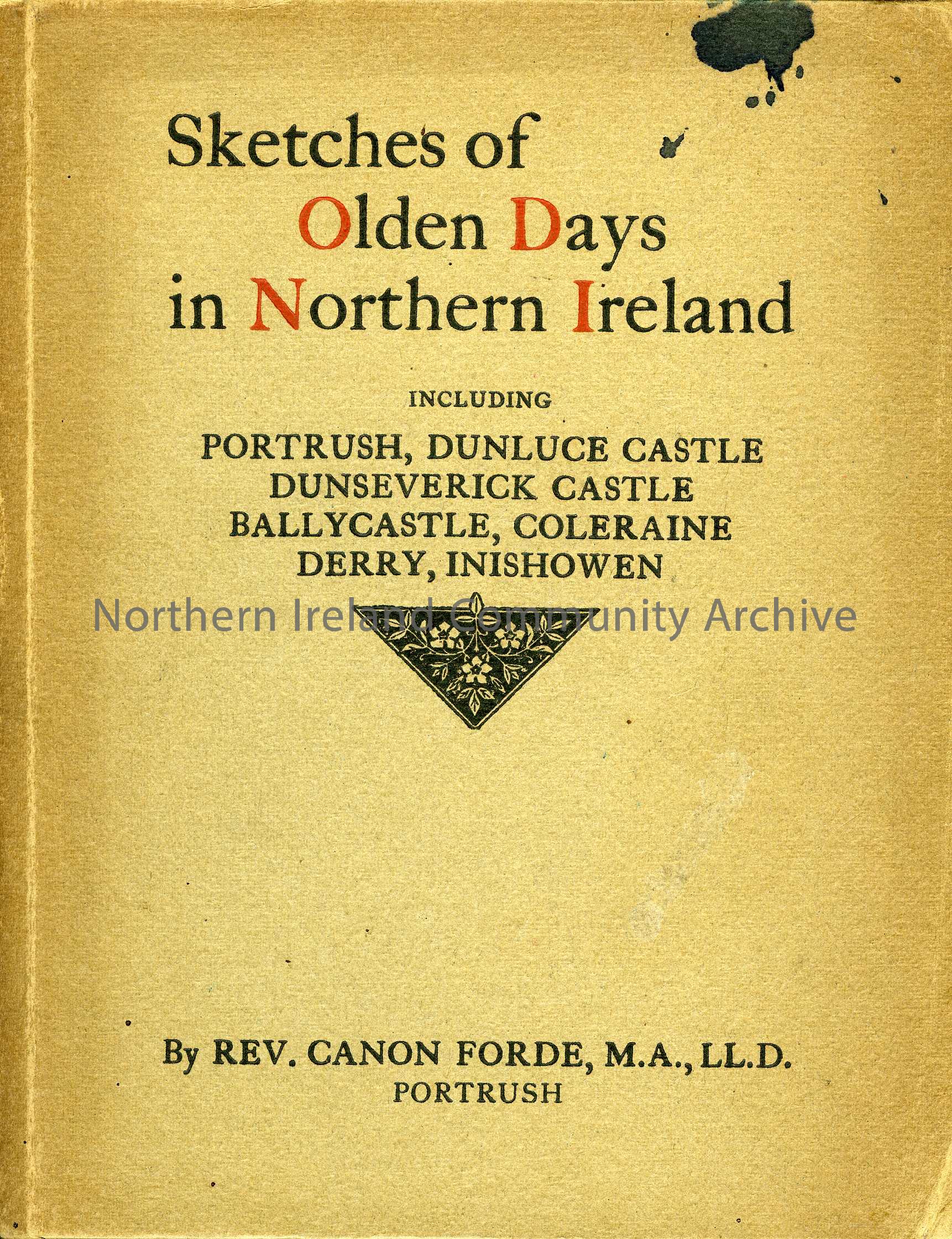 Book titled, Sketches of Olden Days in Northern Ireland. Including Portrush, Dunluce Castle, Dunseverick Castle Ballycastle, Coleraine, Derry, Inishowen. By Rev. Canon Forde M.A., LL.D.