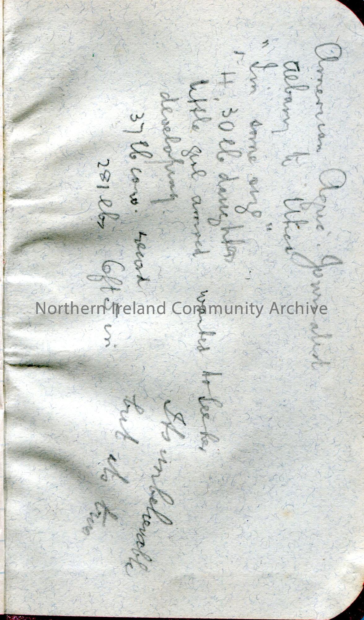 Small address book with brown/red cover. Majority of the addresses are based in North America. Handwritten notes in back of book re America. List of items, possibly for a trip (to America?) such as clothing and camera, Song book, diary, Bible. '£5 from Uncle John recd 20/5/11'.