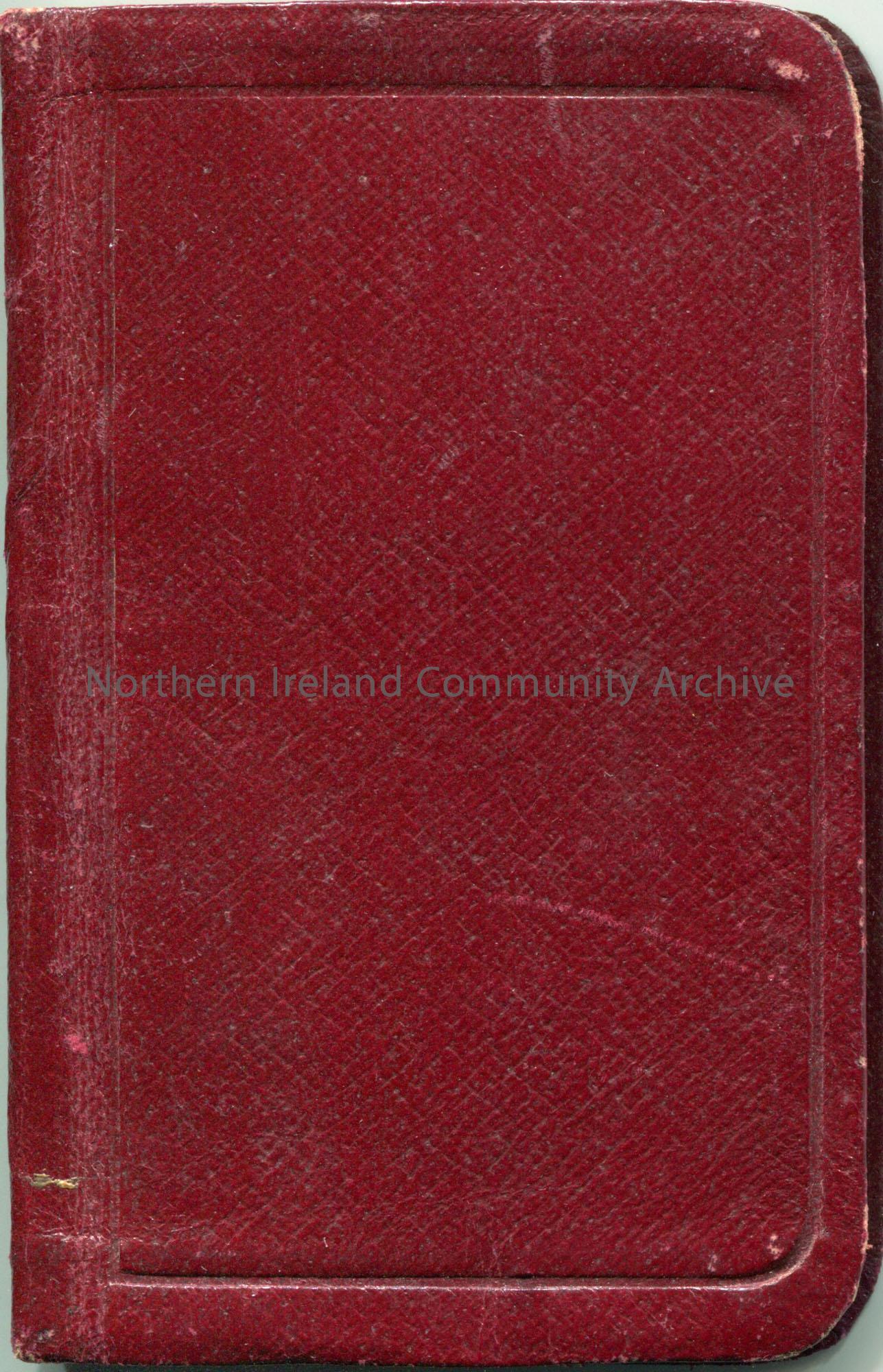 Small address book with brown/red cover. Majority of the addresses are based in North America. Handwritten notes in back of book re America. List of items, possibly for a trip (to America?) such as clothing and camera, Song book, diary, Bible. '£5 from Uncle John recd 20/5/11'.