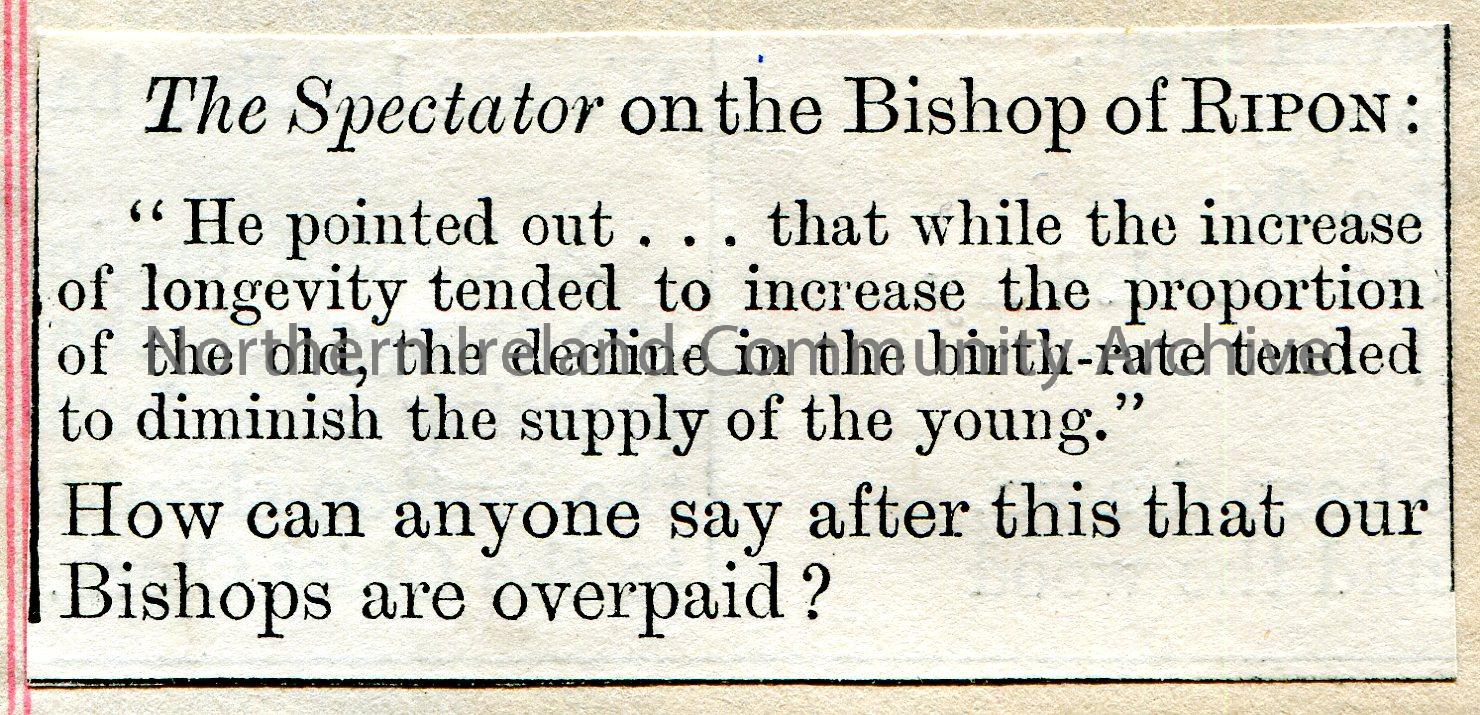 Small cutting from a publication titled, ‘The Spectator on the Bishop of Ripon’.