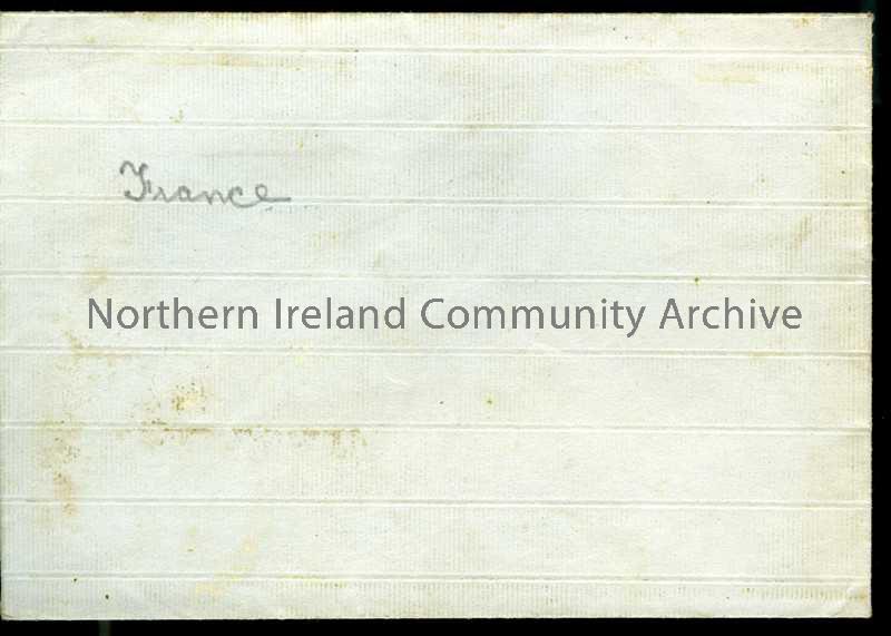 Small envelope – according to accompanying note, sent from home and sent back again as souvenir of trenches