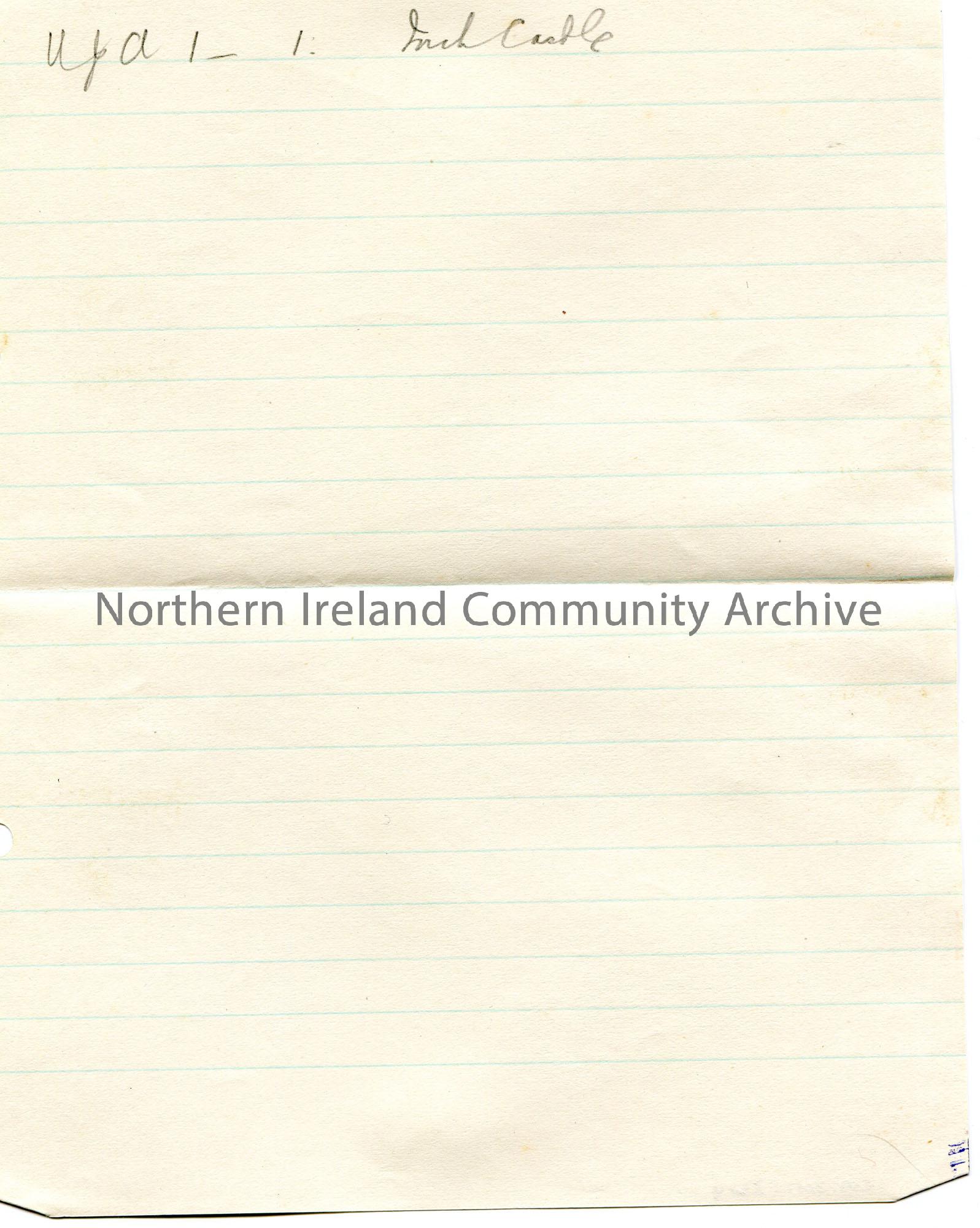 Small note in pencil on lined paper – ‘U F A I I Inch Castle’.