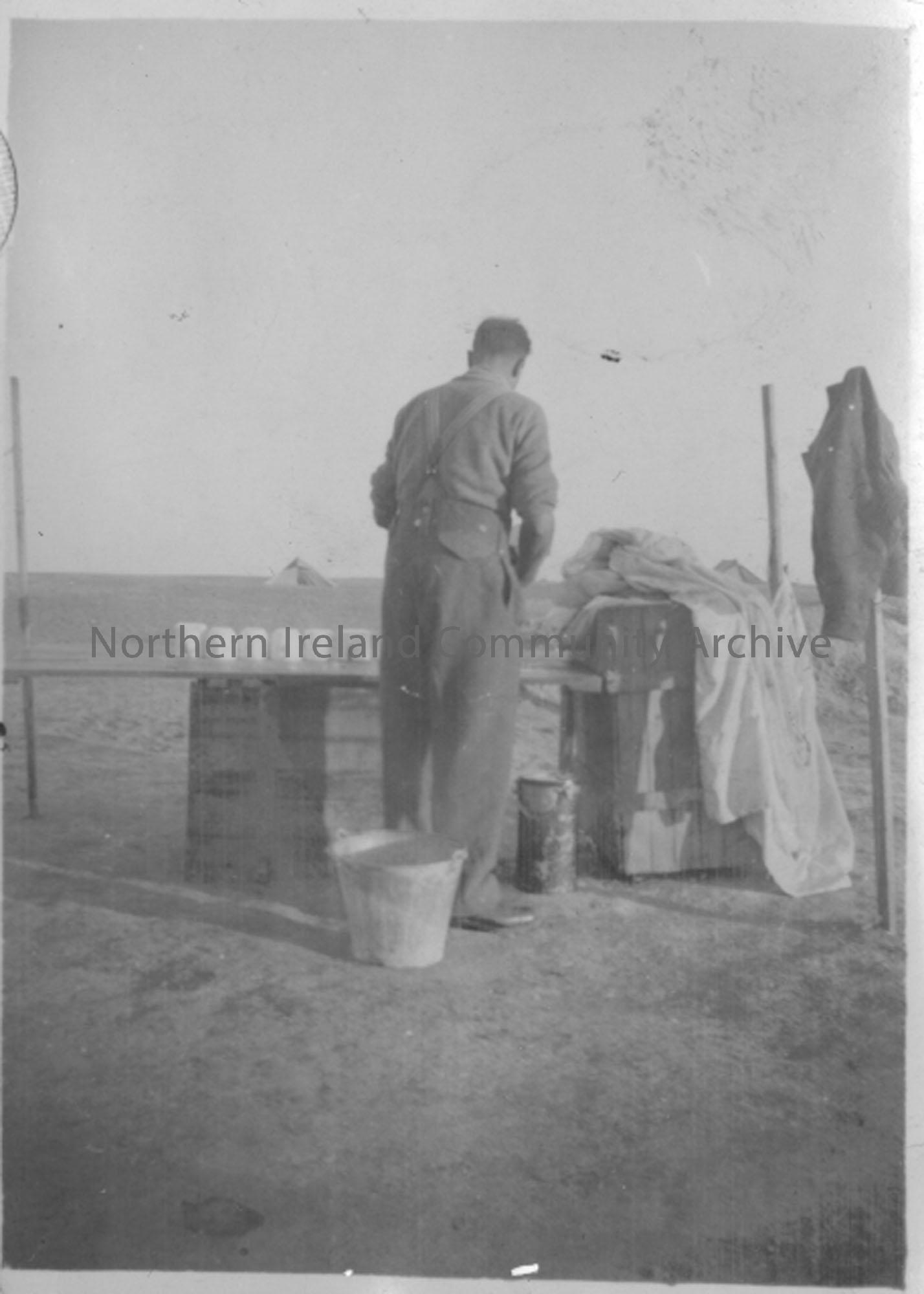 Photograph of a soldier and young woman sitting by the wheel of an army vehicle.
