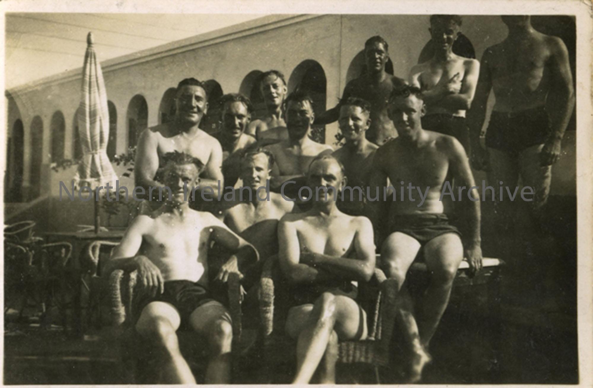Soldiers at Heliopolis Swimming Pool in Cairo. BSM Tom McDonald 4th from left.
