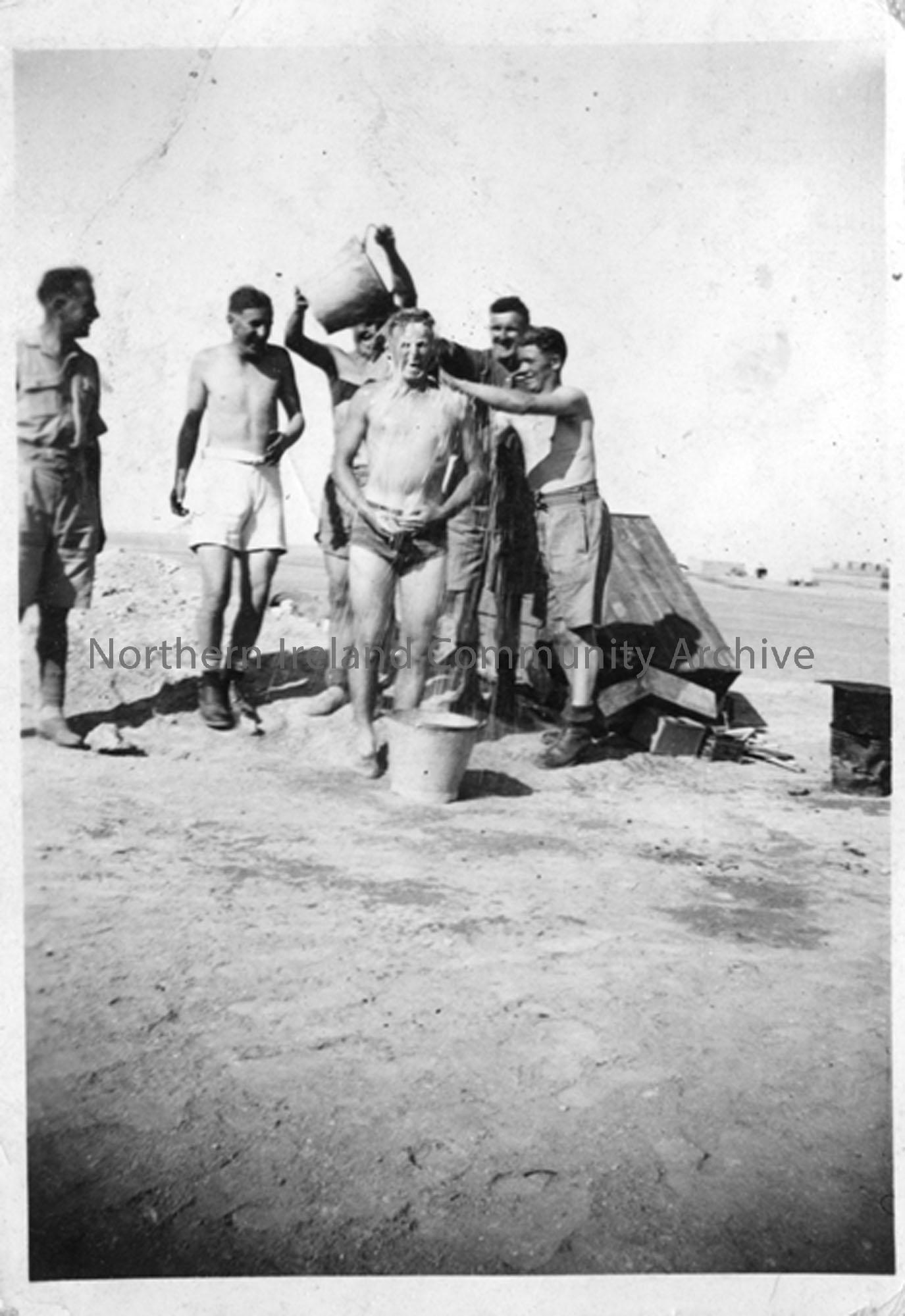 T McDonald getting a wash down. J Loughery in back 2nd from right