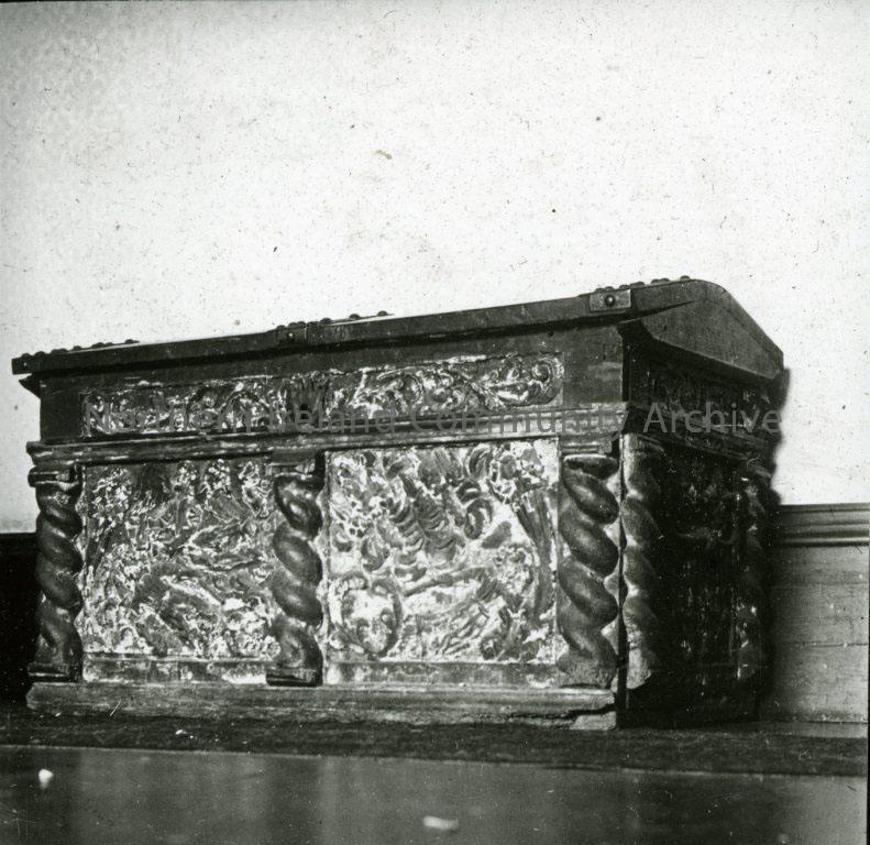 Large wooden carved chest - Spanish Armada - lid closed. See also L:2010:1.370