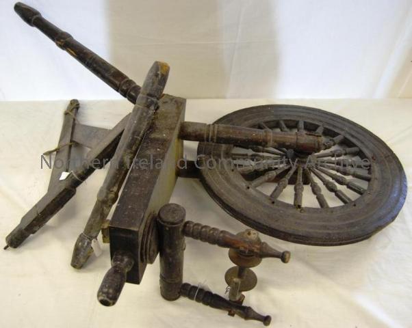 Spinning wheel in 3 parts. Full size. Courtesy of Ballycastle Museum.