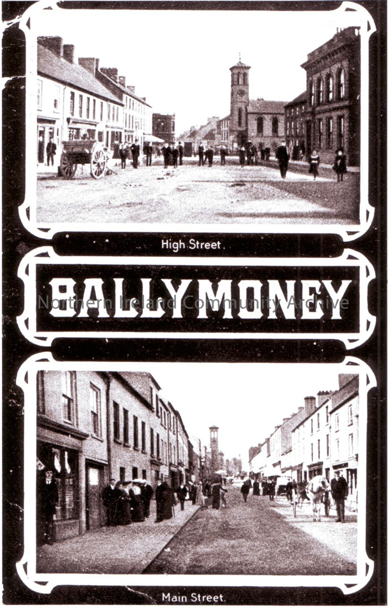 Split views of up Main Street towards the Masonic Hall and down High Street