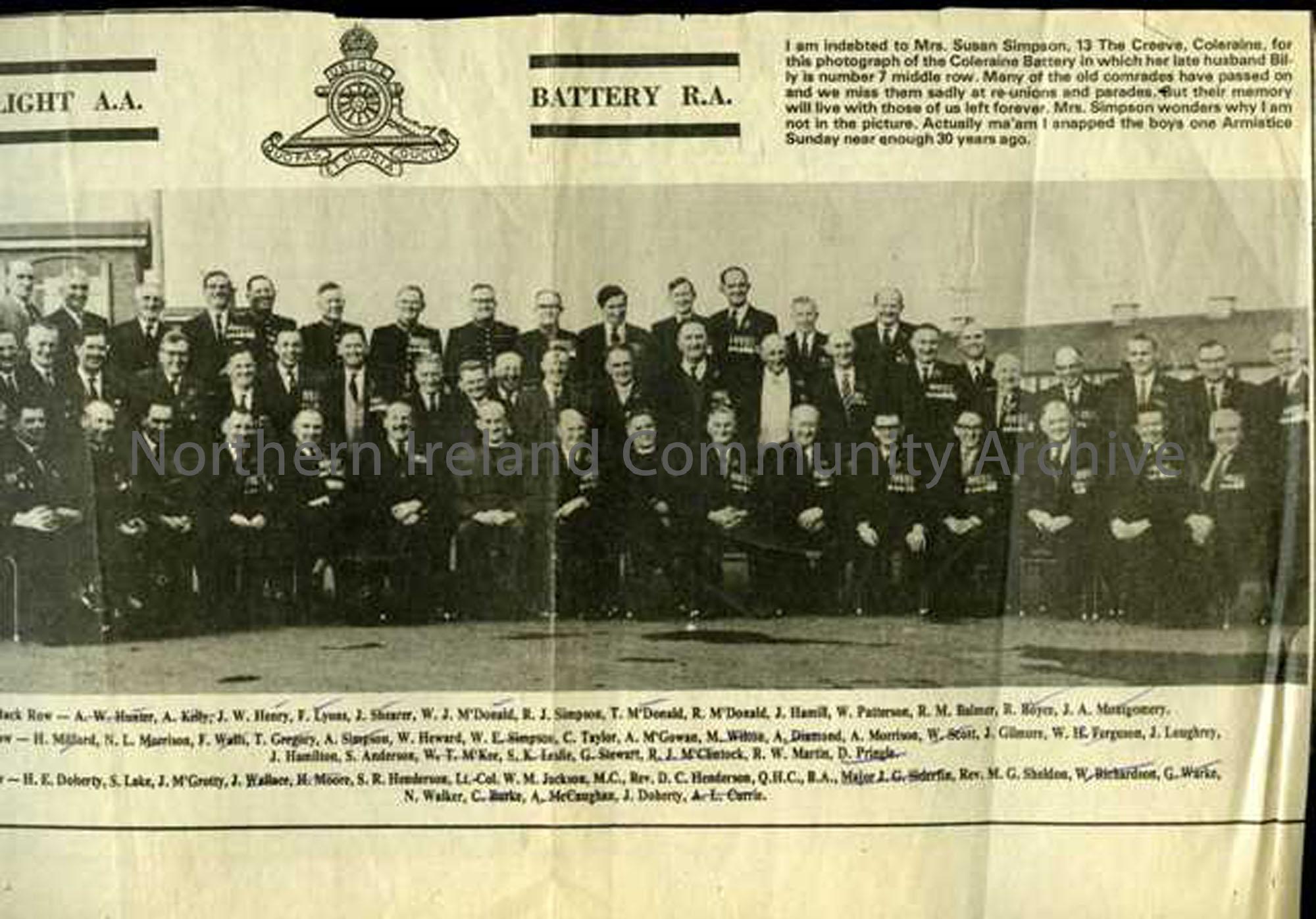 Squad photo of the Battery post-war