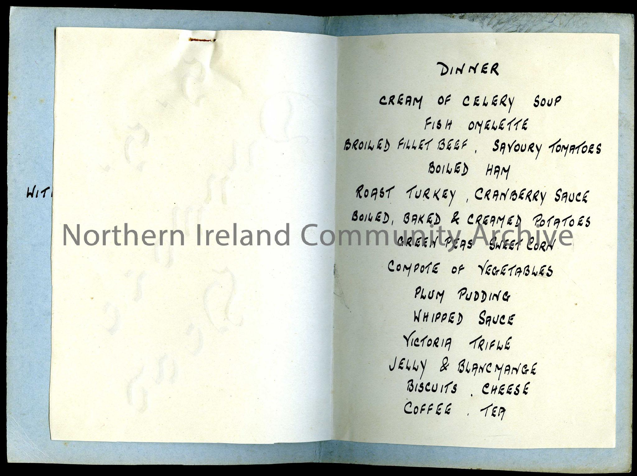 S.S Dunmore Head Xmas 1936 menu, with the Compliments of the Head Line, dark ink drawing of ship on front cover. – Scan819c