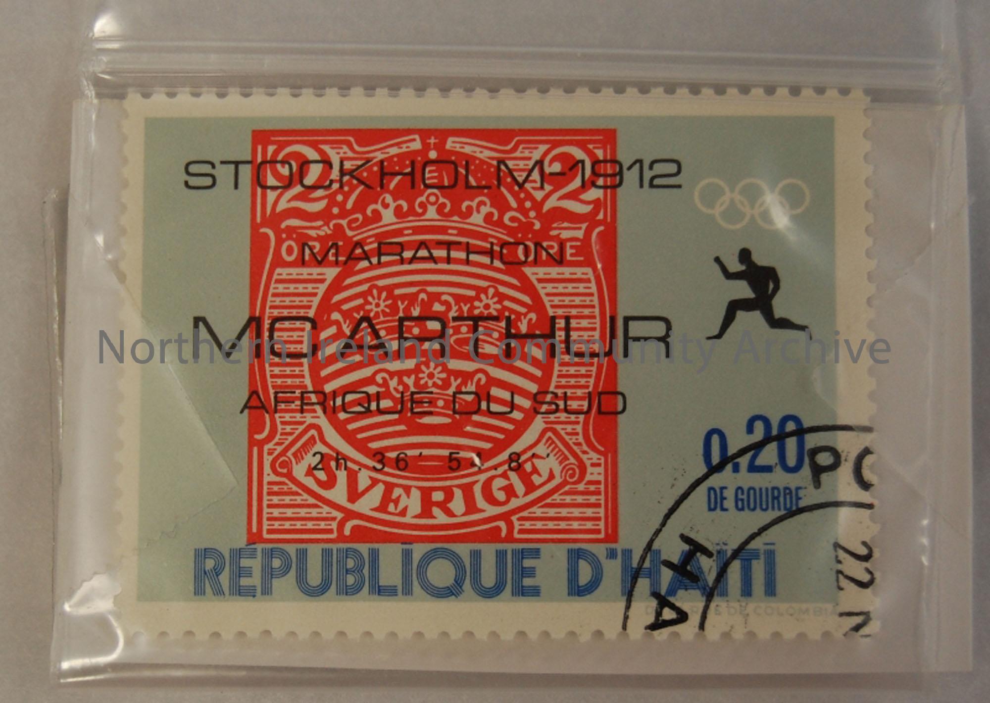 stamp commemorating McArthur's marathon win at the Stockholm Olympic Games, 1912
