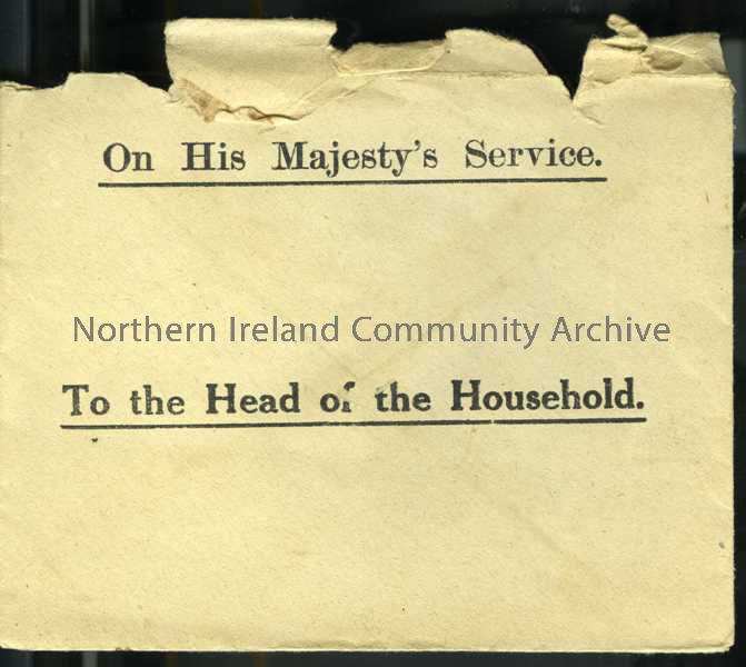 Standard printed envelope addressed to ‘Head of the Household’, no address