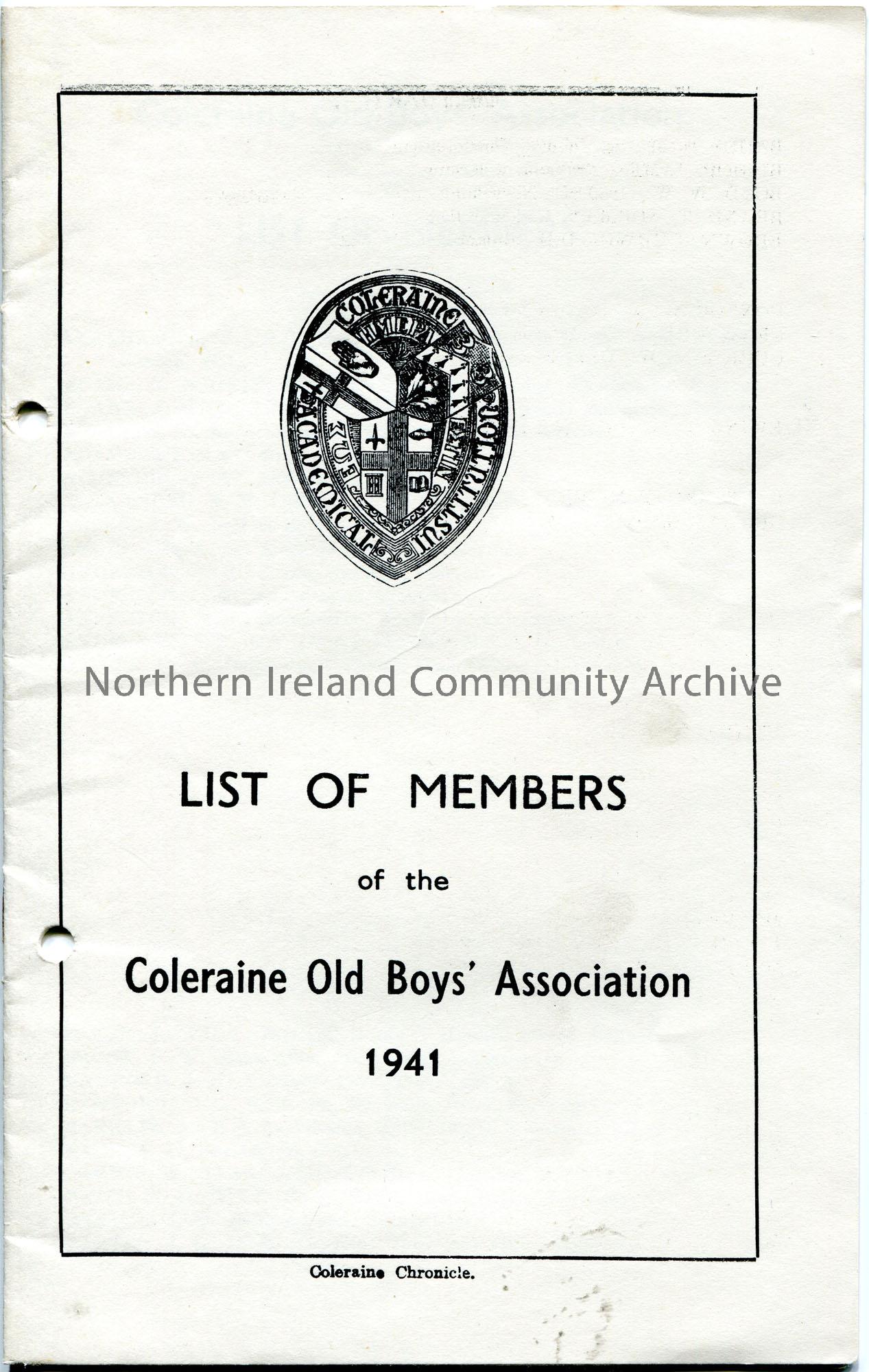 Stapled booklet of the names and addresses of the members of the Coleraine Old Boy’s Association, 1941, Coleraine Academical Institution.