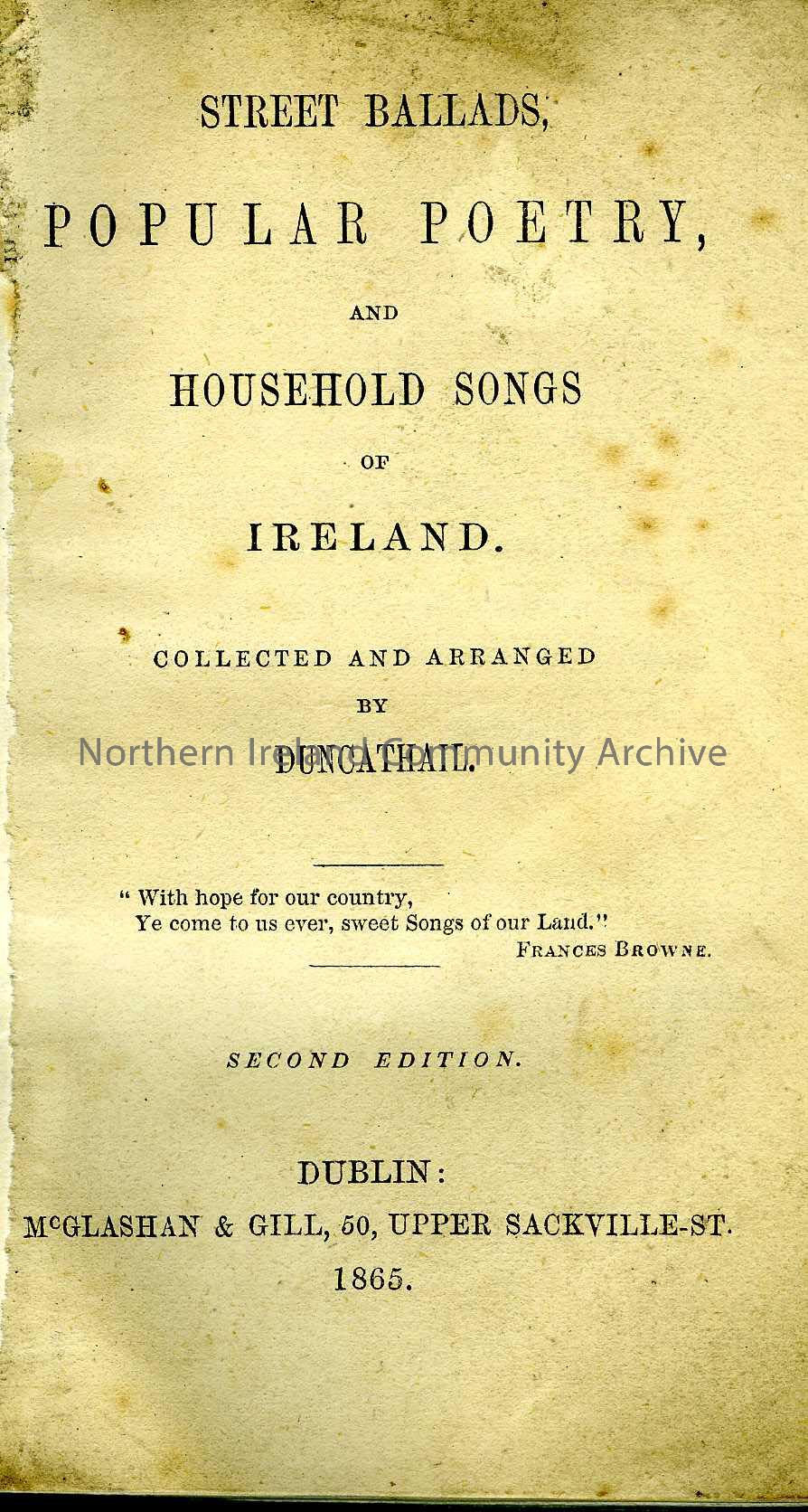 Street Ballads, Popular Poetry and Household Songs of Ireland – 390B