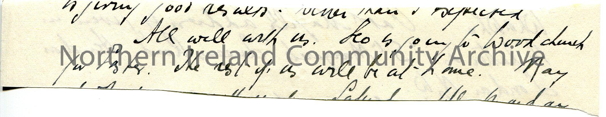 Strip of paper cut from a letter with address of ? Magill, St Margaret, Queens Road, Hendon, London. – scan018b