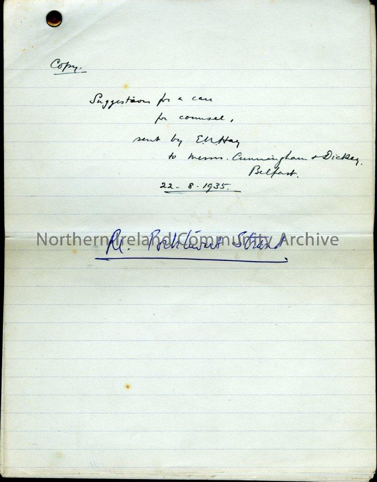 Suggestions for a council etc with reference to the Portstewart Strand, dated 22.8.1935 (4300)