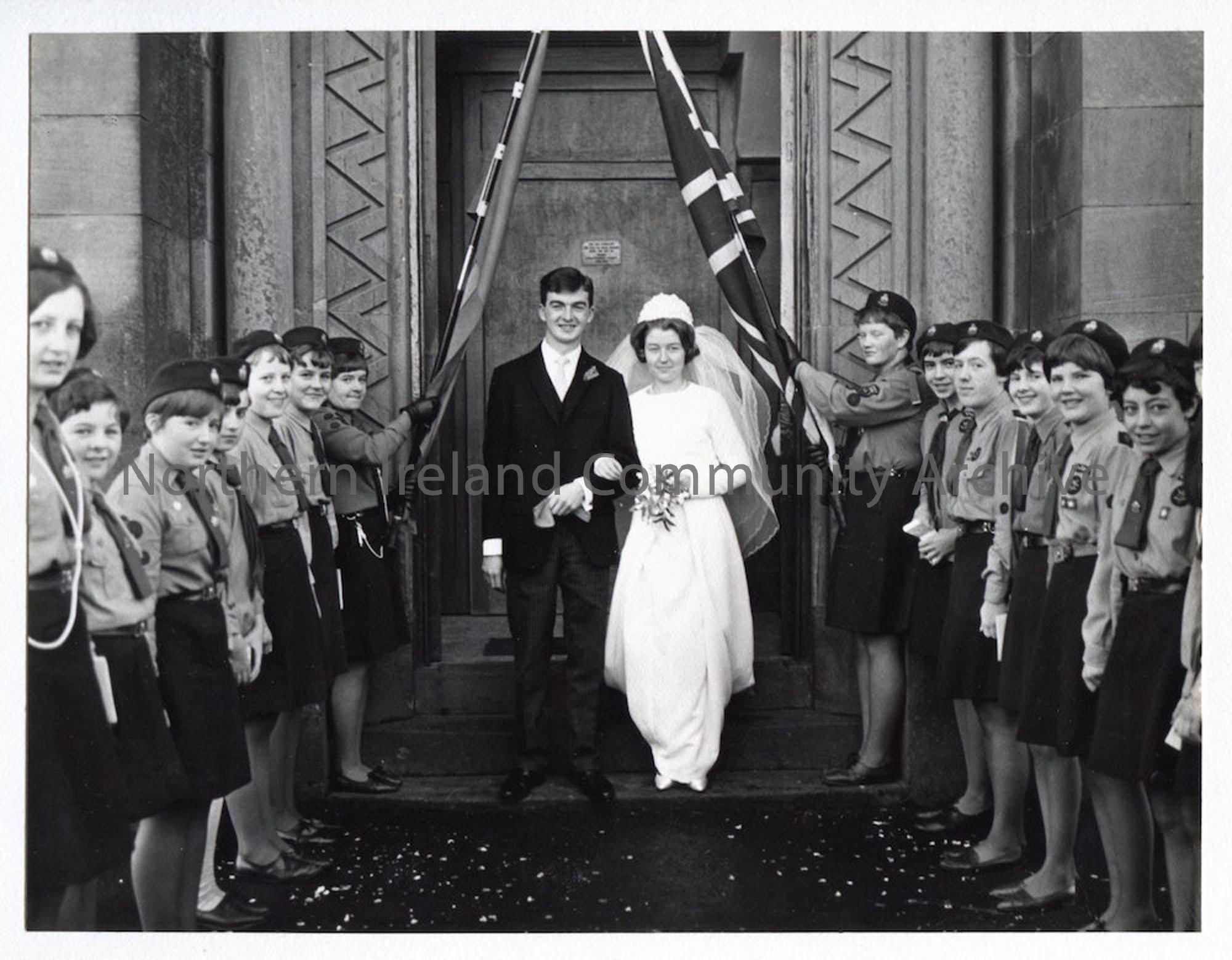 Sylvia was a guide leader at the time so the local guides formed a guard of honour as Sylvia and her new husband left the church.