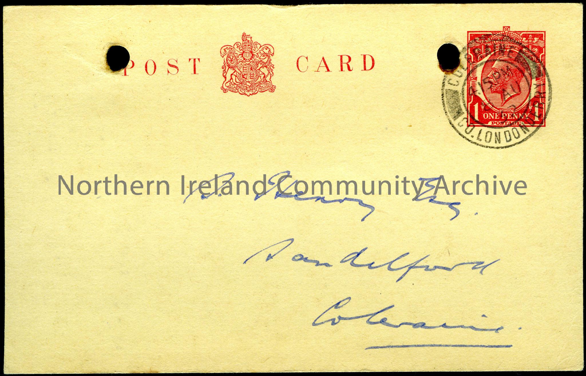 Thanking Sam for an excellent photograph. Addressed Adelaide Avenue and dated 5th August 1932. Signed G. R. ?