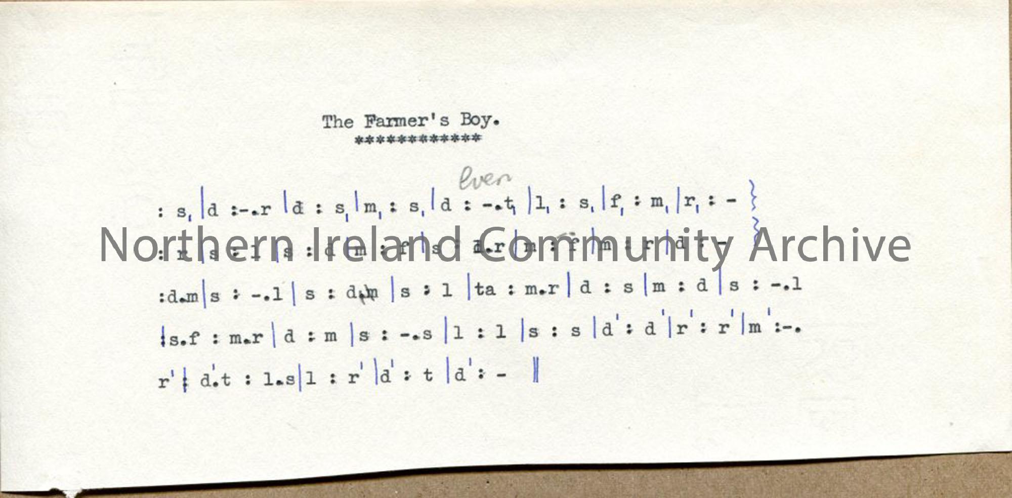 Typed tonic sol-fa notation to 'The Farmer's Boy'.