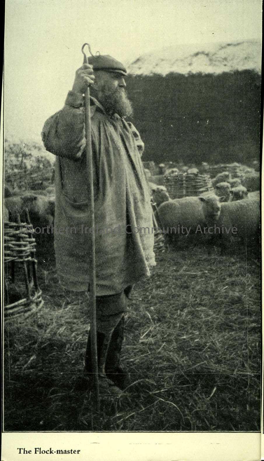 The Flock-master - cutting from journal article or magazine - photograph of shepherd with flock in background